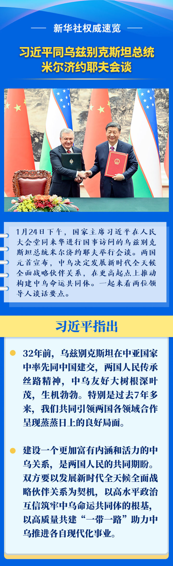 新华社权威速览 | 习近平同乌兹别克斯坦总统米尔济约耶夫会谈