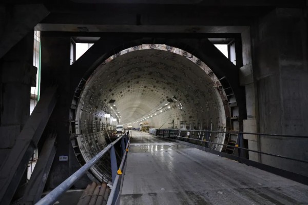 项目过江段采用隧道方案,其中盾构段长2380米,南北明挖段长1983米。盾构隧道外径14.5米,双管双向六车道,采用2台泥水平衡盾构机由北向南掘进。两岸接线在江北大道、横江大道和惠民路相交处各设置一座互通式立交。目前,项目已经实现隧道盾构双线贯通,过江通道主线计划2025年建成通车。