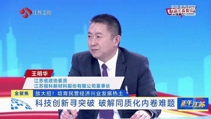 江苏是民营经济大省,也是全国首个个体工商户总量突破千万的省份,无数创新创业者扎根江苏,追逐梦想。今天围绕“如何促进民营企业高质量发展”这一话题,请到了两位嘉宾,分别是省人大代表、苏州市吴江区区长王国荣,省政协委员、江苏视科新材料股份有限公司董事长王明华。
