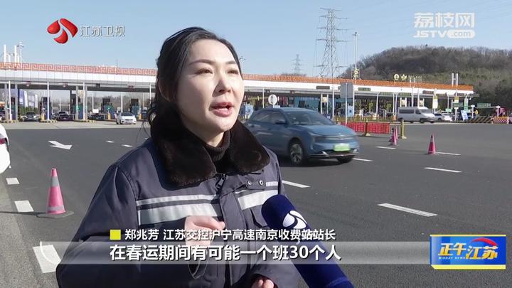江苏交控沪宁高速南京收费站站长郑兆芳说:“正常一个班大概16人左右,在春运期间有可能一个班30个人,用来开收费亭,用来前方的疏导。让驾乘人员提前预知,告知他们怎么样进行分流,快速通行高速公路。”