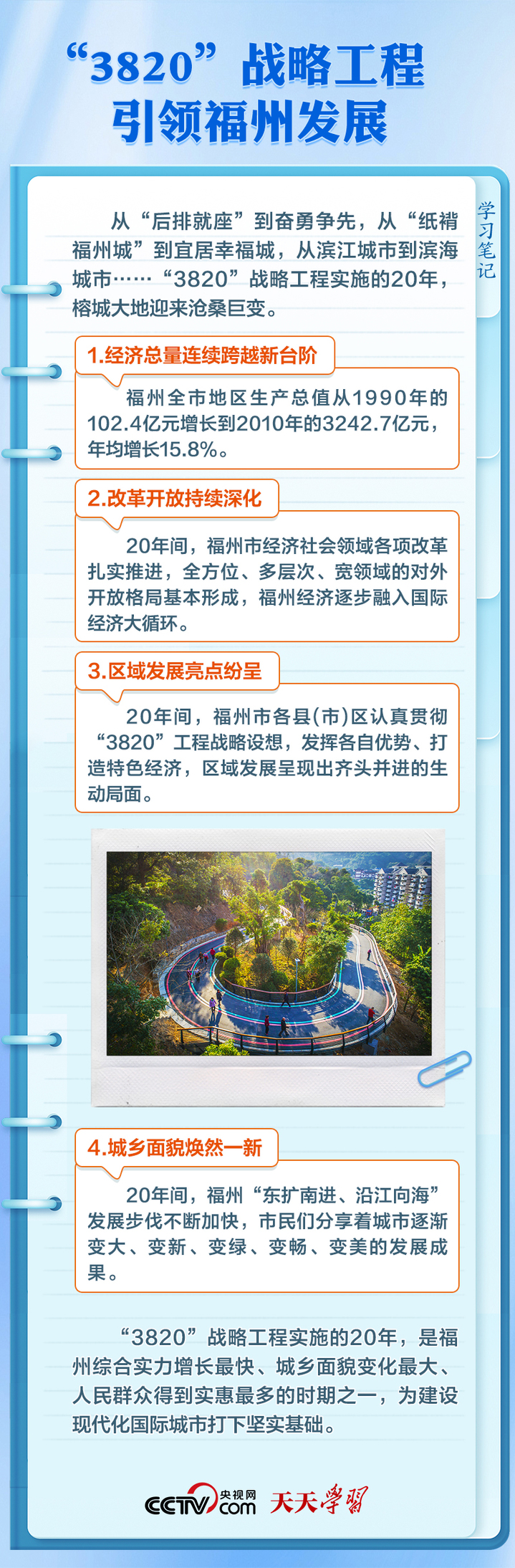 三十多年来,福州坚持“3820”战略工程思想精髓不动摇,一张蓝图绘到底,不断开创现代化国际城市建设的崭新局面。“3820”战略是如何制定的?其思想精髓和时代价值有哪些?央视网《天天学习》栏目与您一起学习领悟。