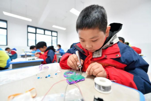 2023年12月14日,在湖北省襄阳市保康县后坪镇中心学校,学生们参加电子制作竞赛。通讯员 杨韬 黄玲 摄