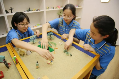2023年5月30日,在湖北省十堰市郧阳区一中,高三学生在学校的沙盘室内通过摆放物件释放压力。通讯员 曹忠宏 宋红梅 摄