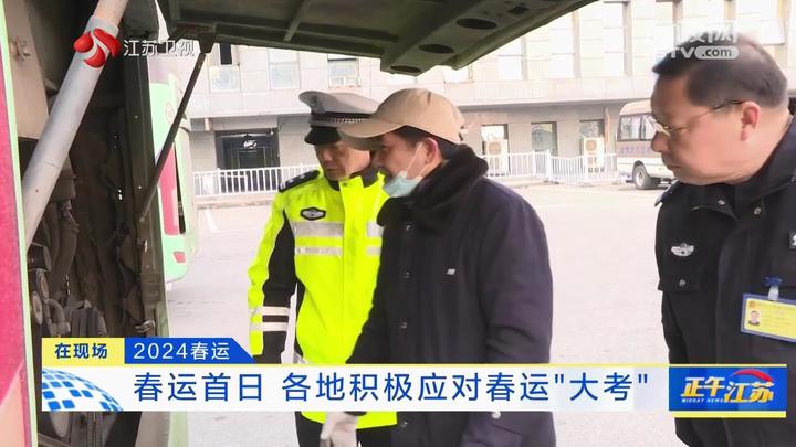 现场,交警对车辆安全锤、灭火器、轮胎、刹车等重点装置进行了仔细检查。春运首日,宿迁汽车客运总站的客流比平时有小幅度的增长。1月26日人流量在1500人左右,目前每天有班车122辆发往江苏境内和周边省份,预计年前3-4天到达高峰。在泰州高港汽渡,执法人员登上渡轮开展节前安全检查,叮嘱渡轮驾驶员严禁疲劳驾驶,密切关注天气情况,严格按照海事部门通航要求安排渡运班次。