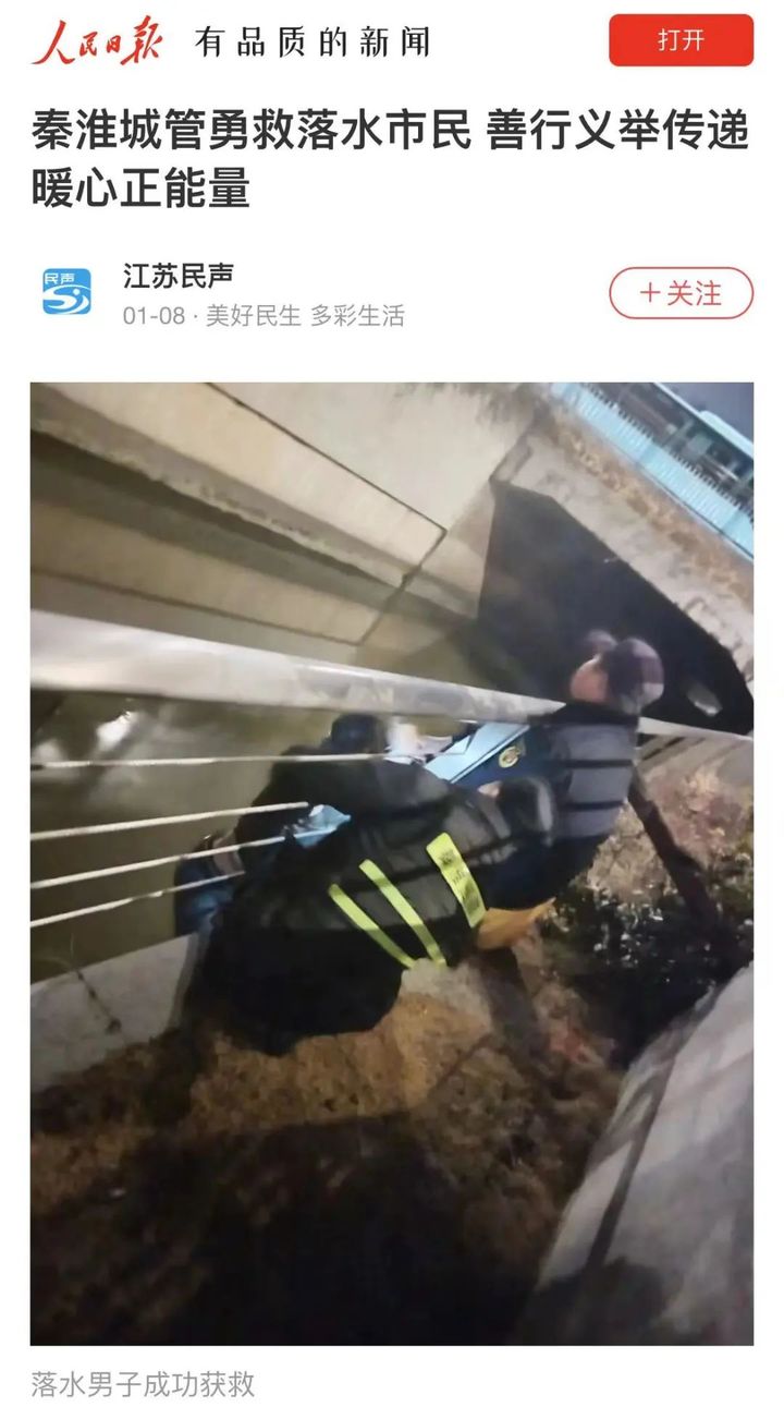 “秦淮城管勇救落水市民”的暖心新闻