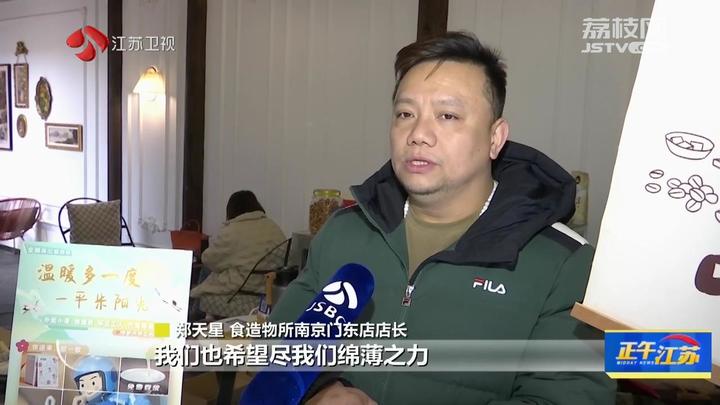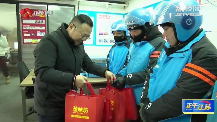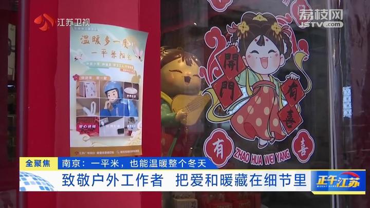 在南京老门东历史文化街区,数十家店铺门口贴上了江苏广电总台融媒体中心公益行动《温暖多一度·一平米阳光》的标识,他们为外卖骑手、快递员、环卫工人、代驾司机等户外工作者,或赠送一杯热饮、或提供一份特色小吃、或送上一个暖手宝。