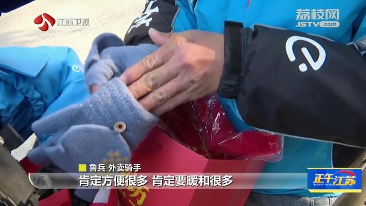外卖骑手王健男来自云南昭通,他说今年就在南京过年,希望能多挣点,然后明年再回去。外卖骑手周路成说,冬天虽然很冷,但还是感受到大家们的关心,谢谢大家!