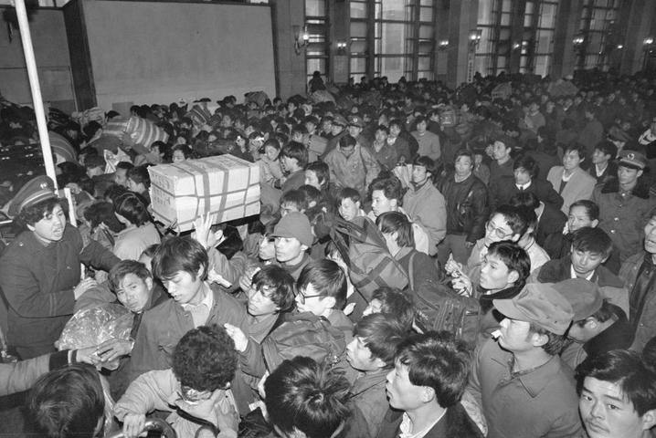 1993年1月12日,北京火车站开始进入春运高峰,旅客在排队进站。新华社记者唐召明摄