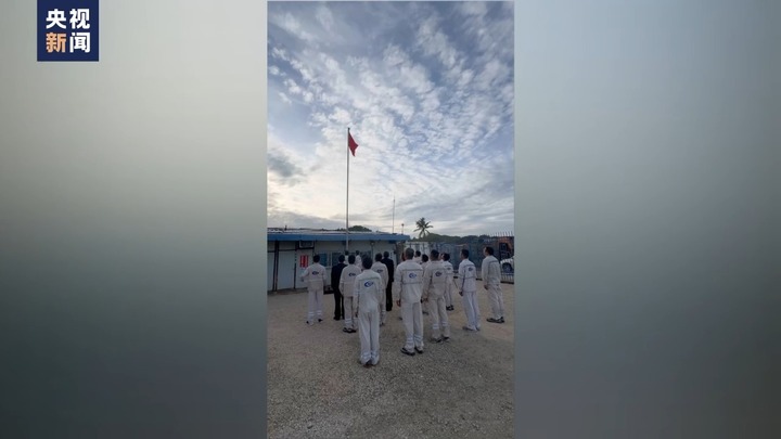 当地时间1月29日,中国驻瑙鲁使馆复馆小组在设立于中国港湾公司瑙鲁项目部的临时办公地点举行升国旗仪式。复馆小组全体成员和港湾公司瑙鲁项目部代表参加。这是时隔19年,五星红旗再次在瑙鲁升起。