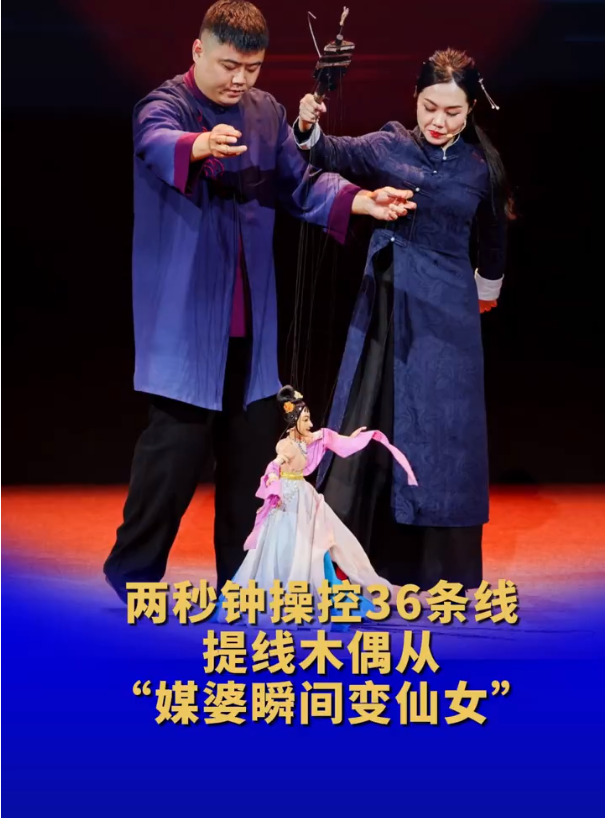 两秒钟,四只手,同时操控36条线,一瞬间,“媒婆变仙女”。视频中的泉州提线木偶戏起源于秦汉,2006年入选了首批国家级非物质文化遗产。现在,10后开始加入到木偶戏的传承中来,古老的木偶戏在不断“转型”,向“新”而生。