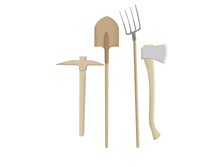 钻机、锯、斧头、焊枪、锄头、镰刀等工具农具。