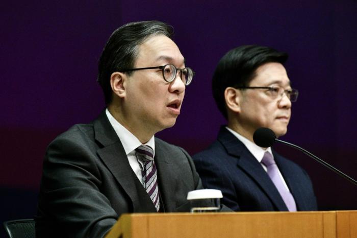 李家超表示,特区政府今日(30日)展开基本法第23条立法公众咨询。图片来源:香港“点新闻” 麦钧杰 摄