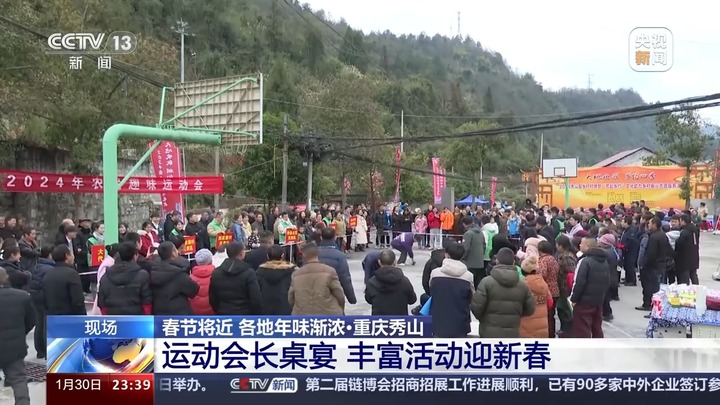 在重庆市秀山土家族苗族自治县,当地举办了乡村趣味运动会,设置了踢毽子、挑担子和投篮等比赛项目,场上的参赛村民们你追我赶,场下的观众呐喊助威,现场氛围热火朝天。