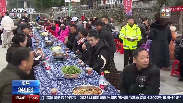 此外,当地还摆起了土家族长桌宴,村民们品尝着特色美食,举杯话团圆、迎新春,感受着邻里间的浓浓温情。