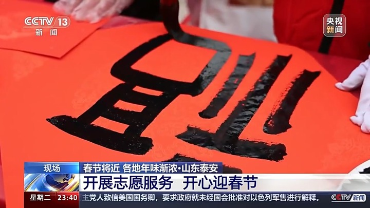 在山东泰安邱家店镇王林坡村,当地围绕老百姓的生活所需,开展了写春联、送福字、义务理发、健康义诊等志愿服务活动,过年的氛围越来越浓。