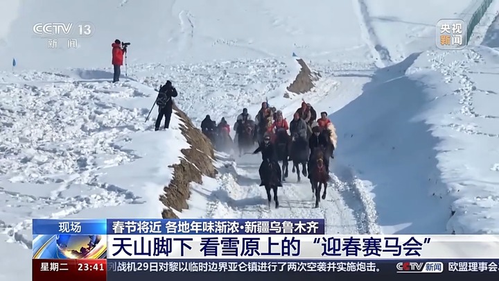 春节临近,在新疆乌鲁木齐市石人子牧场,上演了一场雪原上的“迎春赛马会”。当地一百多位牧民带着家中最强壮的马匹参赛。在20公里的赛马挑战赛中,相互赶超、比拼耐力,尽情演绎马背上的速度与激情。赛马会的奖品也充满“村”味,一等奖是一匹骆驼、二等奖、三等奖分别为一匹小马和一头小牛。