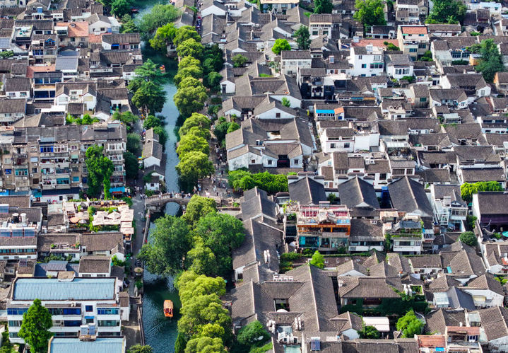 这是无人机拍摄的苏州平江历史街区(2023年7月3日摄)。新华社记者 李博 摄