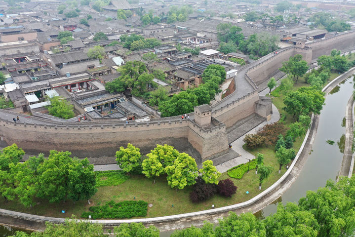 平遥古城一角(2023年5月30日摄,无人机照片)。新华社记者 詹彦 摄