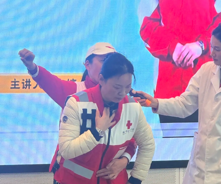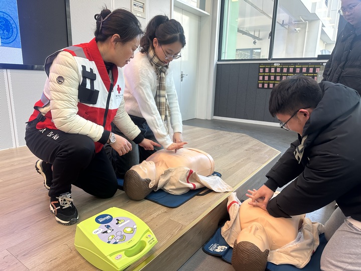培训主要分为理论学习、操作演示和现场考核三个环节,来自南京市红十字会的郁芳芳、王小娟和张天翼三位老师利用PPT和视频,生动细致地讲授了心肺复苏、AED操作等应急救护要点,并现场演示了操作步骤,手把手教学,使大家学会了在遇到突发事件时如何迅速准确采取有效急救措施。