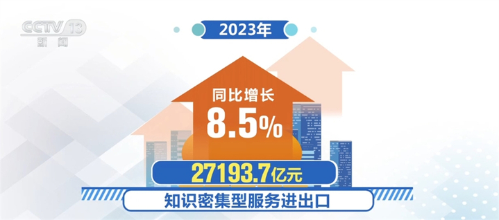 数据显示,2023年全年我国服务进出口总额65754.3亿元人民币,同比增长10%。知识密集型服务贸易较快增长。2023年,知识密集型服务进出口27193.7亿元,同比增长8.5%。其中,知识密集型服务出口增长最快的领域为保险服务,增幅达67%。知识密集型服务进口增长最快的领域为个人、文化和娱乐服务,增幅达61.7%。知识密集型服务贸易顺差3676.7亿元,同比扩大423.5亿元。