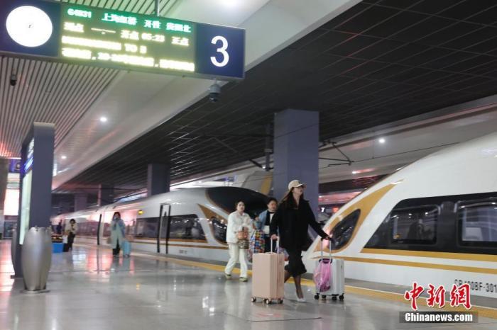 图为2024年春运旅客在铁路上海虹桥站3号站台行走。中新网记者 殷立勤 摄
