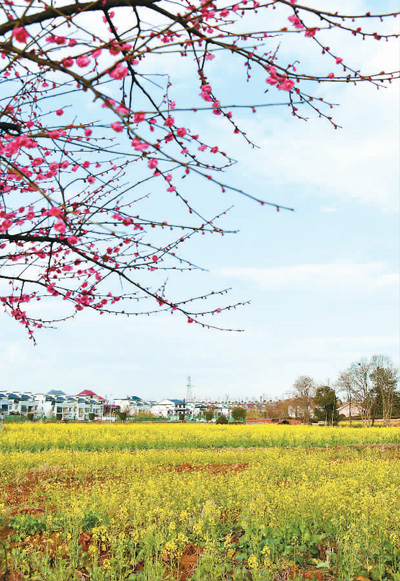 立春临近,江西省赣州市兴国县埠头乡枫林村花香四溢、唯美如画。陈 鹏摄(人民视觉)