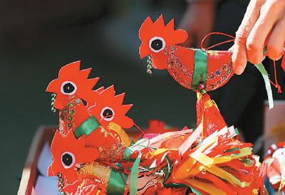 近日,山东省临沂市郯城县郯城街道民间手工艺人缝制“春鸡”到年集上售卖。鲁南部分地区有在立春给孩子佩戴“春鸡”的习俗,以此希望孩子在新的一年茁壮成长、吉祥平安。张春雷摄(人民视觉)