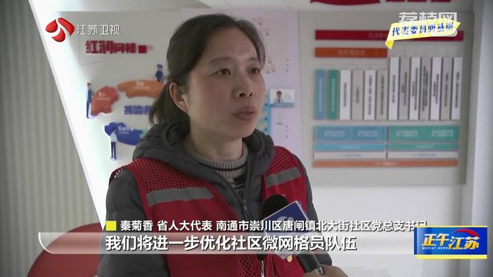 省人大代表 南通市崇川区唐闸镇北大街社区党总支书记秦菊香说:“下一步,我们将进一步优化社区微网格员队伍,加强入户走访,倾听居民的心声。在‘家门口’解决居民的急难愁盼,进一步提升我们社区的党组织服务水平,提升我们的基层治理能力。”