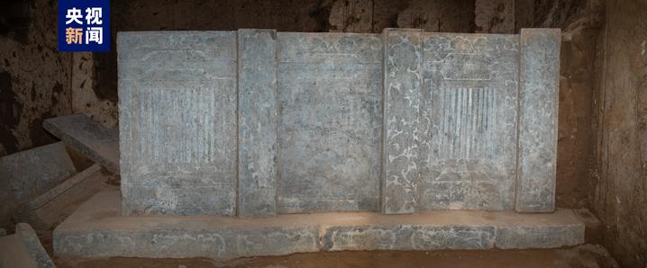 该墓为斜坡墓道三天井单室砖室墓,遭严重盗扰。墓室西侧发现石椁一具,保存较好。石椁面阔三间,进深两间,顶部为庑殿式,仅一侧雕刻有瓦棱;椁身由壁板和倚柱卯和而成,板壁外侧雕刻门窗、卷云及神兽,内侧主体为侍女,周边饰有花草等内容;倚柱内外均刻缠枝卷草花朵,部分穿插飞禽走兽;基座以七块石板铺成,立面间隔刻有壸门图案,内填奔兽图样。石椁线刻精细,画面华丽而不繁缛,人物体态丰腴而不臃肿,充分体现出盛唐开元时期图案灵动、富于想象的特征。
