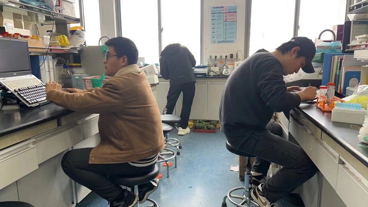 2月1日上午,在南京农业大学水稻研究所,作物遗传育种专业博士二年级王庆凯正在组会汇报自己课题的阶段性进展。为了推进自己手头的科研任务, 他需要往返于学校与南农大土桥水稻育种中心之间,测量并分析水稻籽粒的品质相关性状。“我们做水稻研究的实验周期比较长,想尽快做出研究成果,就需要抓住水稻的生长周期,希望在春季水稻播种前,将手头的测试全部完成”王庆凯告诉记者,在基地大家的工作时间是早8点到晚10点,灯火通明的实验室里大家埋头工作是一种常态。