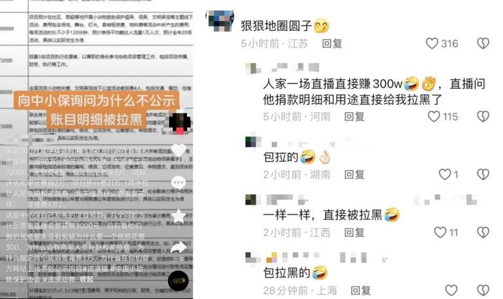 在直播间和短视频的评论区,有网友质疑,“这两只猫需要200多万元吗?”“这200多万元用于何处,最后由谁分配?”“我捐了50元,希望这个钱能真的用到流浪猫身上。”在直播间,中国小动物保护协会工作人员回复网友称,所筹款项会用于流浪猫、流浪狗的救助。但有多位网友表示,自己在直播间询问筹款资金明细和用途时被拉黑。在2月1日的直播中,中国小动物保护协会表示,迫于一些压力未来可能不会再直播这两只猫的近况。