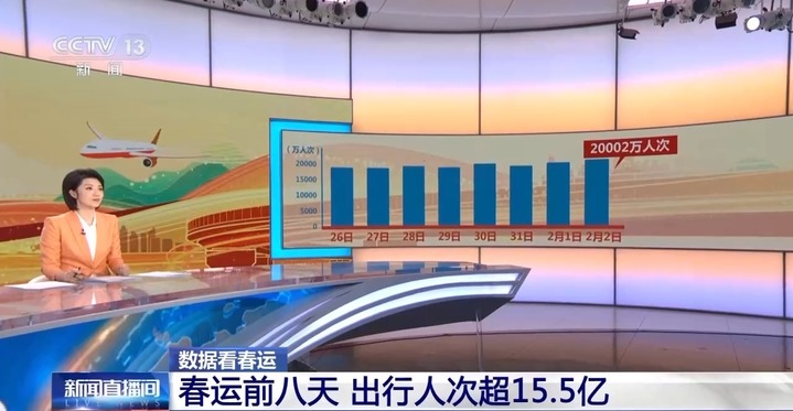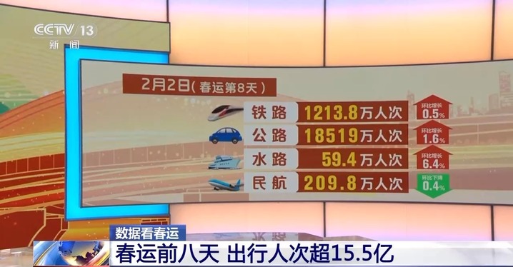 2024年综合运输春运工作专班数据显示,春运前8天,超15.5亿人次出行。