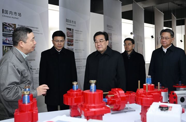 国瑞液压机械公司是国家级专精特新“小巨人”企业。看着做工精良的液压元器件,信长星称赞企业“有绝活”,鼓励企业聚焦主业、精耕细作,提升高端化、智能化、绿色化水平。每到一处,信长星都强调要抓细抓实安全生产工作,既紧盯传统产业,也不能忽视新兴产业,在主动发现问题、及时解决问题上下更大功夫,以高水平安全保障高质量发展。
