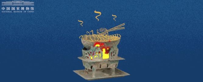 △西汉青铜染炉。在耳杯中放好调料,然后通过下边的炉子加热,煮好的肉可以蘸着调料食用。