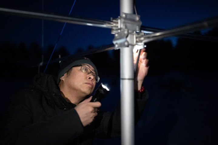 2月2日,在中国科学院地质与地球物理研究所黑龙江漠河地球物理国家野外科学观测研究站,来自中国科学院国家空间科学中心的科研人员郑浩然在进行数据采集工作。