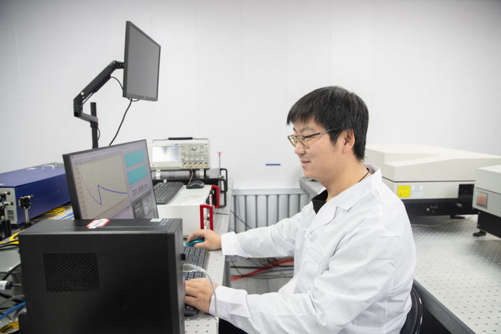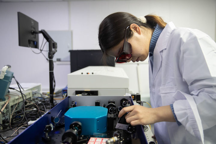 2月2日,在中国科学院地质与地球物理研究所黑龙江漠河地球物理国家野外科学观测研究站,来自中国科学院国家空间科学中心的科研人员吴方在调试激光发射设备。