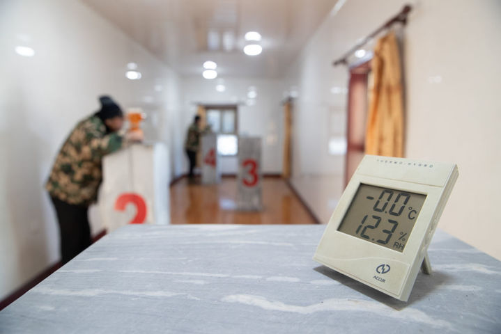2月2日,中国科学院地质与地球物理研究所黑龙江漠河地球物理国家野外科学观测研究站科研人员刘纪康在检查设备。