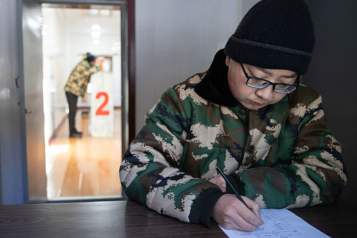 2月2日,在中国科学院地质与地球物理研究所黑龙江漠河地球物理国家野外科学观测研究站,科研人员李来顺在整理数据。