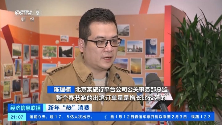 北京某旅行平台公司公关事务部总监 陈理楠:目前,整个春节游的出境订单量增长比较强,相比去年同期大概增长了10倍左右。冰雪游今年比较出圈的,大概同比增长也达到10倍左右。