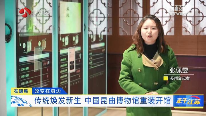 苏州台记者张佩雯:“这里就是全新升级的中国昆曲博物馆,一走进来就感受到历史与文化的交融。博物馆活化利用了全晋会馆的古建空间,同时引入现代的数字化方式,让我们可以沉浸式地观展。而当婉转悠扬的曲调从古戏台传来,您听,这就是昆曲的魅力。”