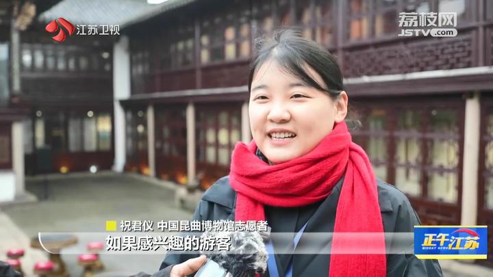 中国昆曲博物馆志愿者祝君仪说:“初一有跳加官、昆曲的《游园》、锡剧的《珍珠塔》;初二有丝竹的专场;初三也有一些昆曲演出等等。如果感兴趣的游客可以免费进入参观,欢迎大家。”