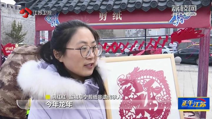 盐城阜宁剪纸非遗传承人阴红红说:“今年龙年,我做了一幅作品,祝愿大家在龙年团团圆圆、福到财到。”
