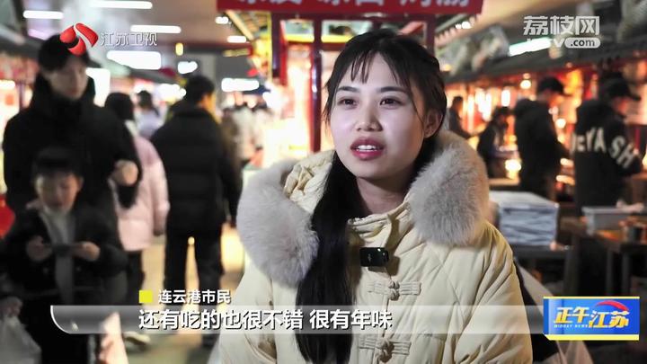 连云港市民说:“我看这边花灯非常漂亮,还有吃的也很不错,很有年味。”