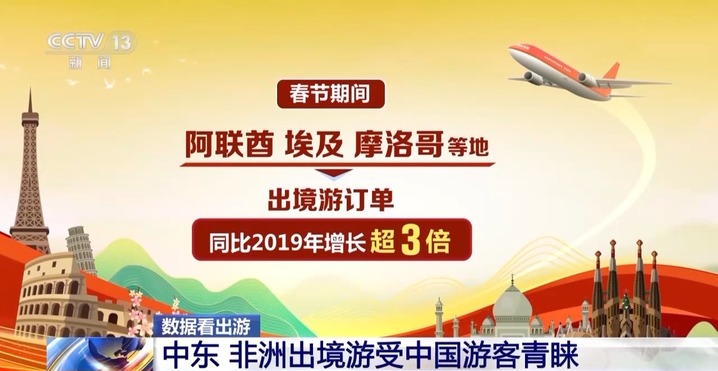 此外,中东、非洲也是中国游客选择较多的地方。某旅游网站数据显示,春节期间,阿联酋、埃及、摩洛哥等地的出境游订单同比2019年增长超过3倍。去肯尼亚体验与野生动物近距离接触、到毛里求斯浮潜海钓,则是春节期间境外旅游的热门项目。