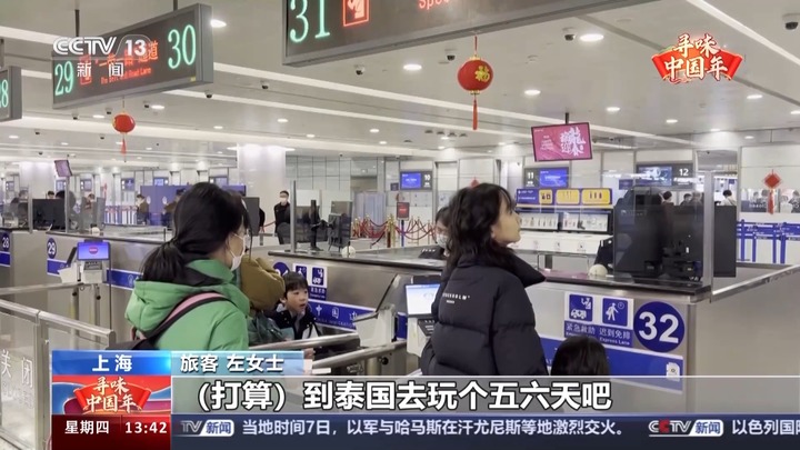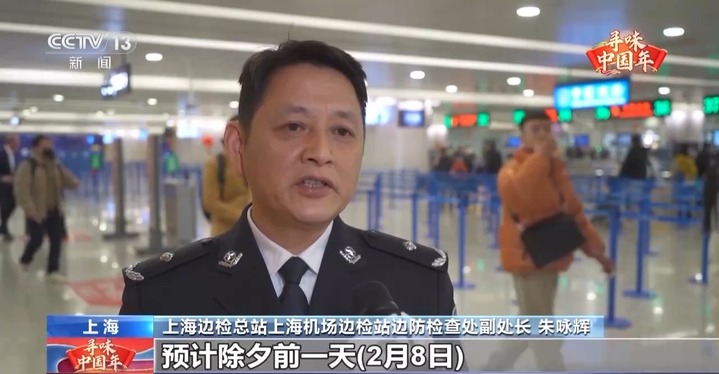 上海边检总站上海机场边检站边防检查处副处长 朱咏辉:从目前情况来看,预计2月8日迎来出入境客流峰值,其中出境游主要以前往港澳、东南亚、日韩等传统旅游目的地为主。从入境方向看,节前回国探亲的华人数量也有所增加。