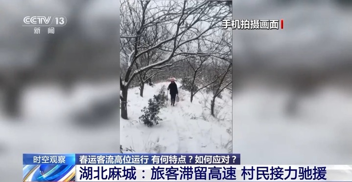 截至8日18点,受恶劣天气影响导致行车中断的高速,还有G50沪渝高速往重庆方向榔坪至巴东段。从2日开始,湖北麻城遭遇低温雨雪冰冻天气,大量车辆堵在了大广高速路麻城段。看到有这么多旅客滞留高速,一位90后小伙带动村里的村民们开始了一场接力驰援。
