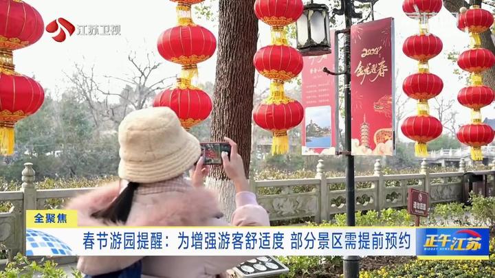 为了保障春节假期游客的游园体验,江苏部分旅游景区实施预约管理,有些景区上线了新的服务,确保游客在游园过程中愉悦、安全。