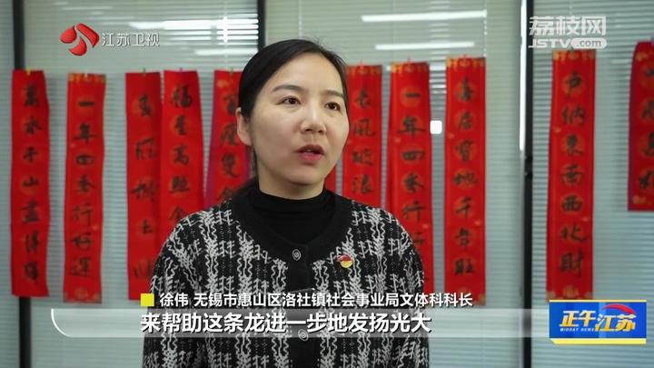 无锡市惠山区洛社镇社会事业局文体科科长徐伟告诉记者,当地也组建了洛社城管,包括妇女儿童等多支队伍进一步地传承这一条龙,同时也推出了新的龙身制作技艺,七彩龙、绿龙等等,就是一代一代新老更迭,也是通过比赛和地方文化交流等方式,帮助这条龙进一步地发扬光大。