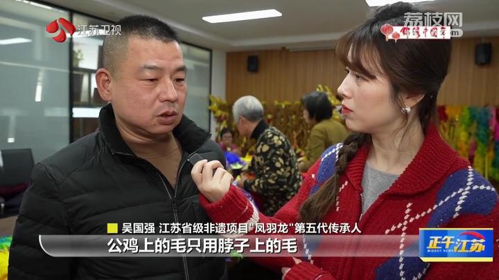 江苏省级非遗项目“凤羽龙”第五代传承人吴国强告诉记者,只选用公鸡脖子上的毛,因为脖子上的毛是最漂亮的,制作完成以后第一次看的人非常多。