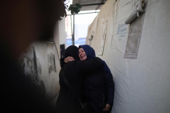 2月10日,在加沙地带南部城市拉法,巴勒斯坦人哀悼遇难的亲属。新华社发(哈立德·奥马尔摄)